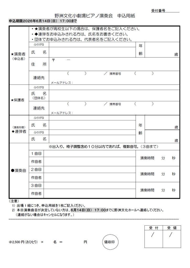 一人 2,500円(連弾の場合、人数分必要になります)