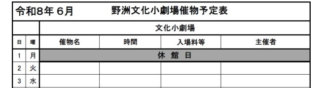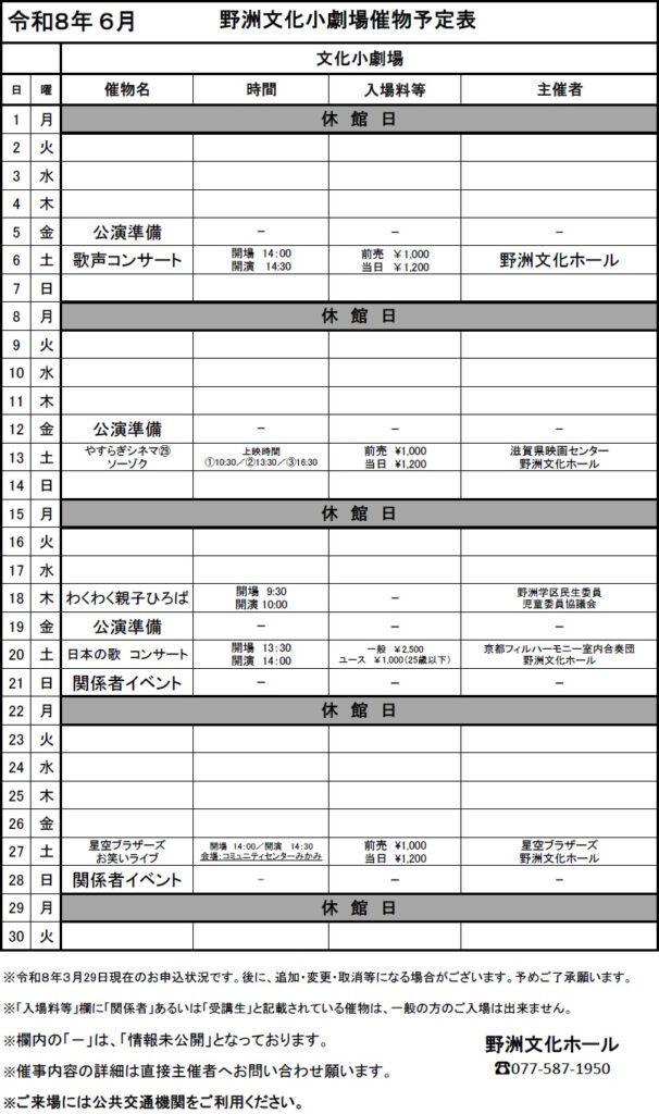 2026年6月催物予定表