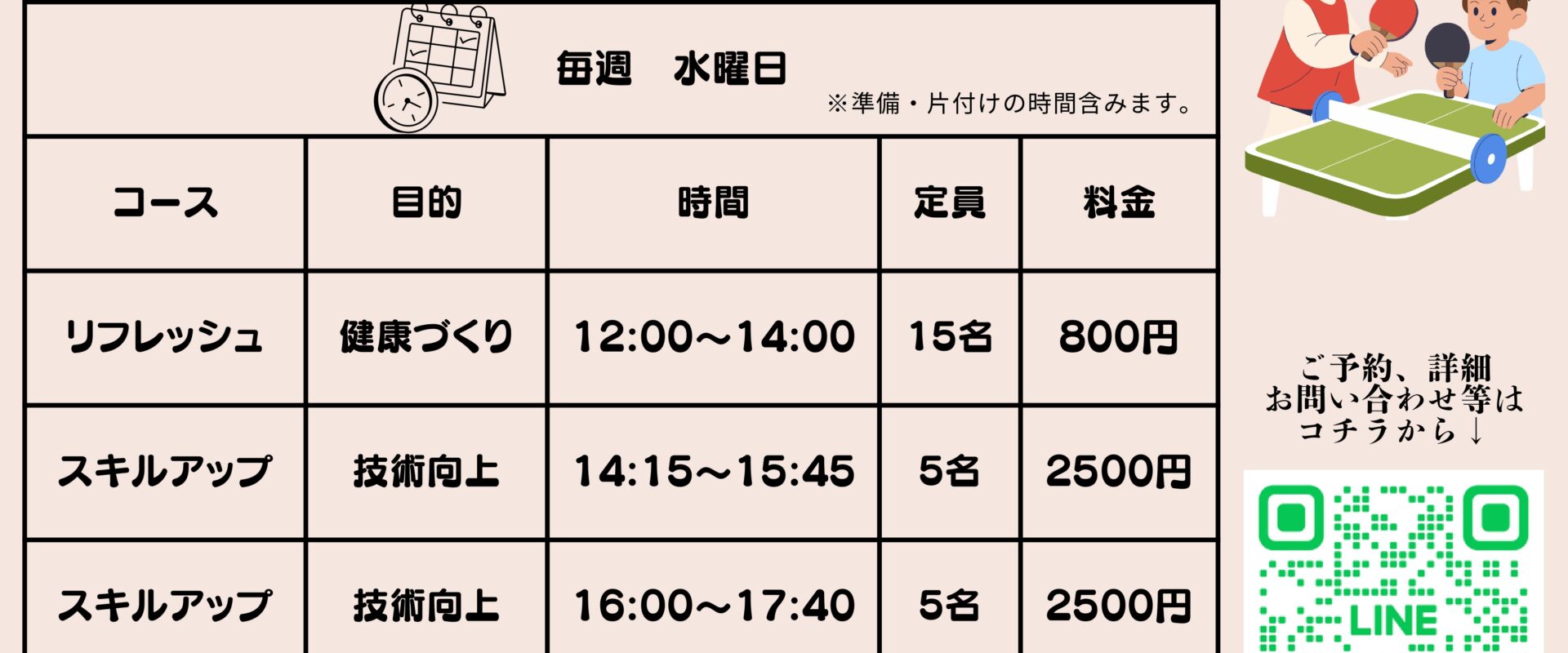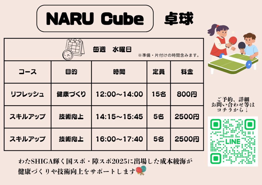 2026年3月19日 総合体育館 NARU Cube卓球教室 令和8年4月8日(水)からいよいよスタート! 詳細のお問合せ・ご予約等は、上部の二次元コードを読込んでください。 前の記事 一覧に戻る 次の記事