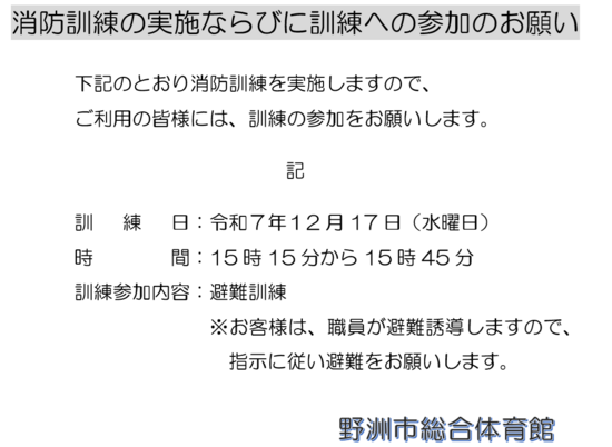 消防訓練実施のお知らせ